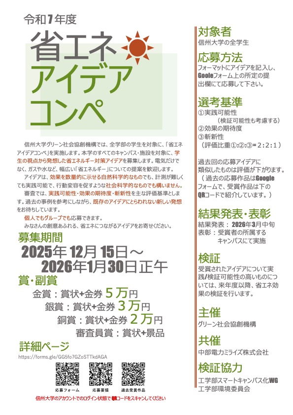 信州大学では、GX(Green Transformation)ビジョンを構築するための知識の習得を目指すコースとして「信州デジタル×ことづくりリカレント学習プログラム GXベーシックコース」の申し込みの受付を開始しました。